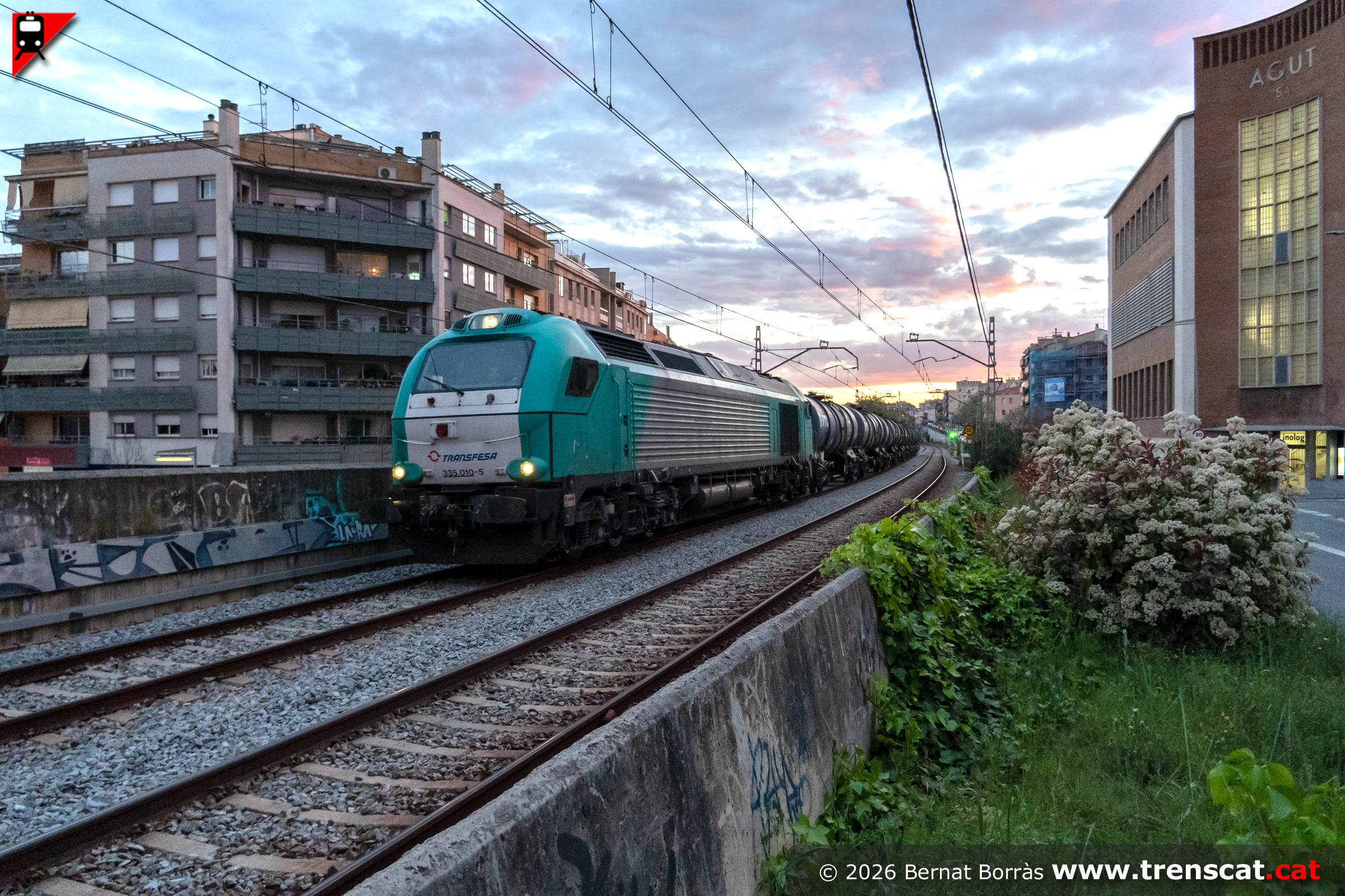 El 13 d’abril de 2026 va tornar a circular per la línia 220 i per Terrassa un tren de mercaderies, que no es veia des de l’extinció del saler Manresa-Flix l’any 2017. La 335-010 de Transfesa amb cisternes d'àcid clorhídric de Covestro circula per Terrassa des de Tres Camins (Tarragona) a Portbou, amb un llarg recorregut desviat pel tall del túnel de Rubí via Tarragona-mercaderies (inversió de marxa) Reus, Lleida (inversió de marxa), Manresa, Sant Andreu (inversió de marxa) i Girona. El tren duia un retard considerable de més de 7 hores pels diversos encreuaments als trams de via única, passant ja amb molt poca llum per Terrassa, a les 20h33. Foto: Bernat Borràs (13.04.2026)