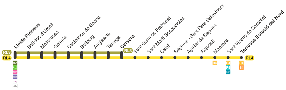Es preveu que l'estiu de 2026 hi hagi 14 circulacions diàries per sentit entre Lleida i Cervera, 5 de les quals fins a Terrassa, millorant la freqüència actual de la línia RL3 amb l’increment de tres circulacions. Es preveu sol·licitar a Adif la cessió de les 14 estacions entre Bell-lloc d'Urgell i Rajadell per tal d'equipar-les amb nova senyalètica, informació i CCTV. Alguns municipis, com Sidamon, Fondarella i Vilagrassa, han reclamat la creació de nous baixadors –sobretot Sidamon, que és el més allunyat de les estacions existents-, amb l’objectiu de millorar l’accessibilitat al servei ferroviari. |